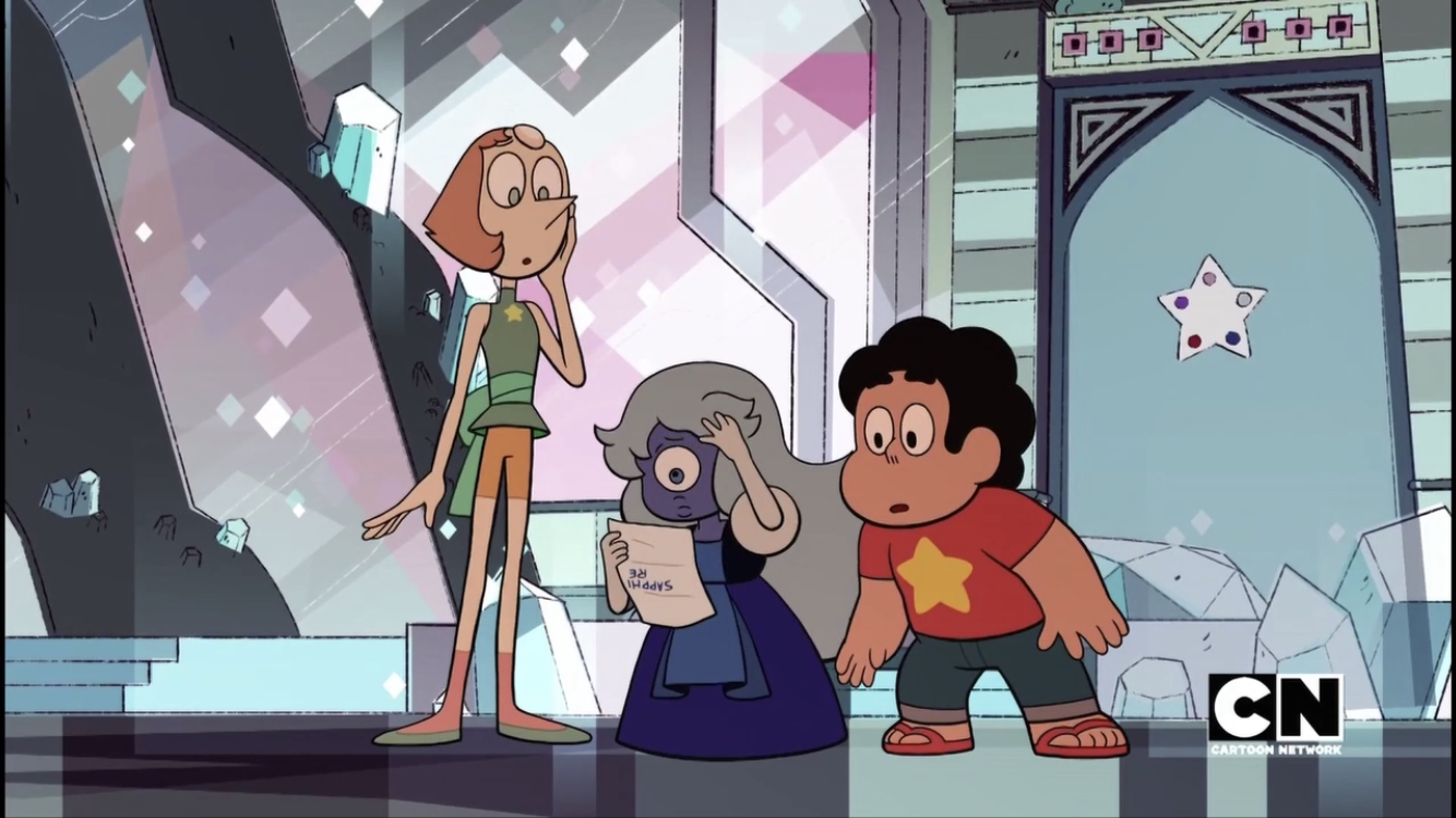 - Cuando Steven y Amatista reparten los panfletos de Rubí, se ve a un hombre cuyos brazos están pintados del mismo color que su cabello. Más tarde, se vuelve a ver al mismo hombre, pero con color de piel normal.