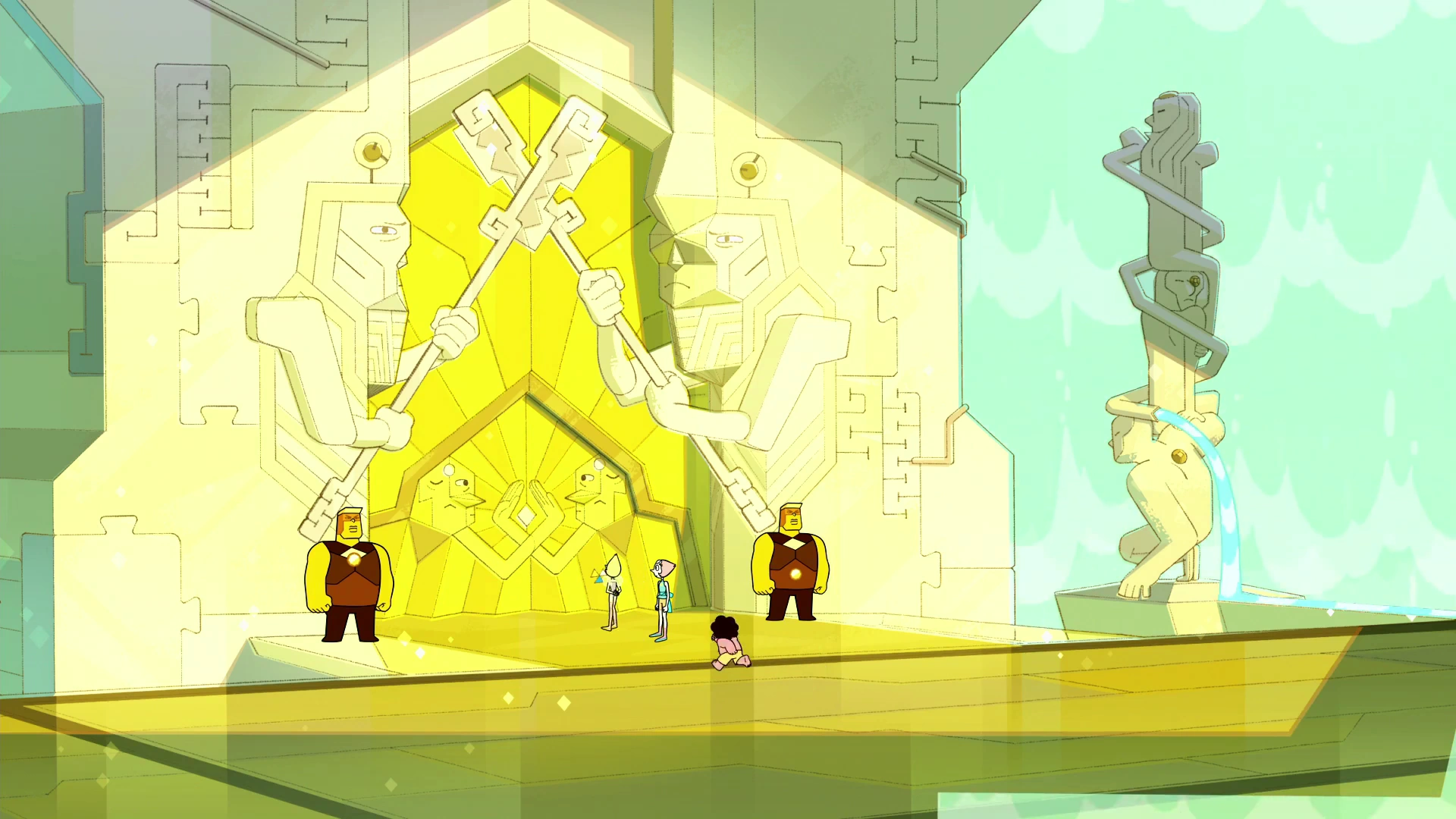 El edificio es completamente amarillo, con dos grandes estatuas cruzando lanzas sobre la entrada y el símbolo actual de las diamantes en la puerta. El interior está lleno de vapor, con asientos grandes para las Diamantes, dos estatuas grandes con cascadas que salen de sus bocas, y la ventosa de vapor que proviene de un triángulo con el símbolo actual de las diamantes en el suelo.