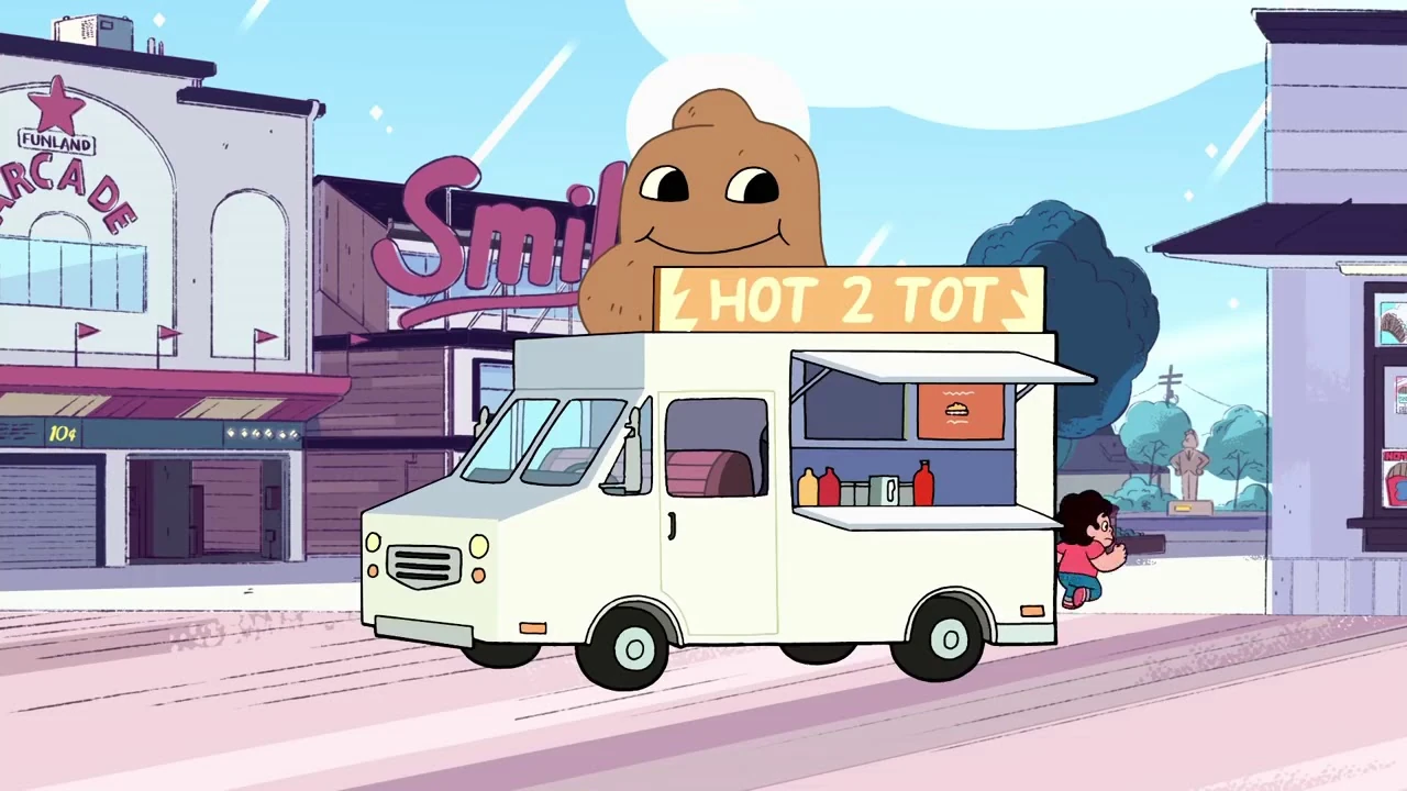 En su menú ofrecen "Tater Tots", que son pequeñas masas de puré de papas fritas en forma de pequeños bollos presentados en una caja con pañuelos de papel, listos para ser consumidos con la mano. También vendren Sobras de papas fritas, probablemente debido a la insistencia de Steven por las mismas en el pasado.