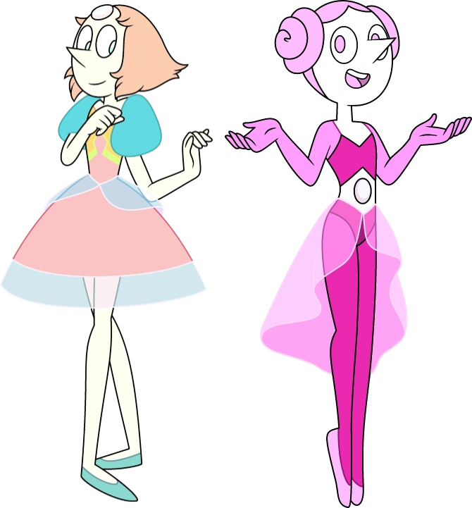 - En "La Carrera Espacial", Perla llevaba un diamante rosado en su traje espacial, asimismo, es revelado en "Una Sola Rosa Pálida" que su perla consorte es Perla de las Gemas de Cristal.