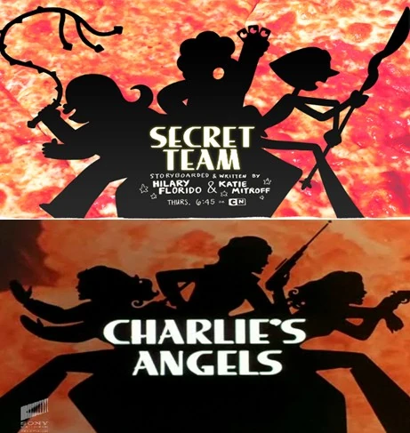 - La obra oficial de este episodio, tiene similitud al logo de la serie estadounidense "Los Ángeles de Charlie" (Charlie's Angels).
