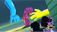 - Las siluetas de las gemas que forman al "Clúster Mano" hicieron un intento de des-fusionarse; aunque no lo lograron debido al hecho de que sus gemas estaban unidas.