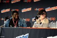 Ian Jones-Quartey, junto con Rebecca Sugar, estuvieron firmando pósters con dibujos.