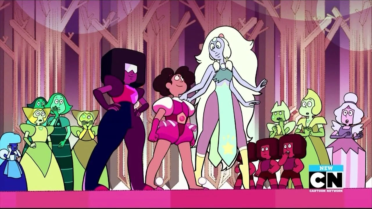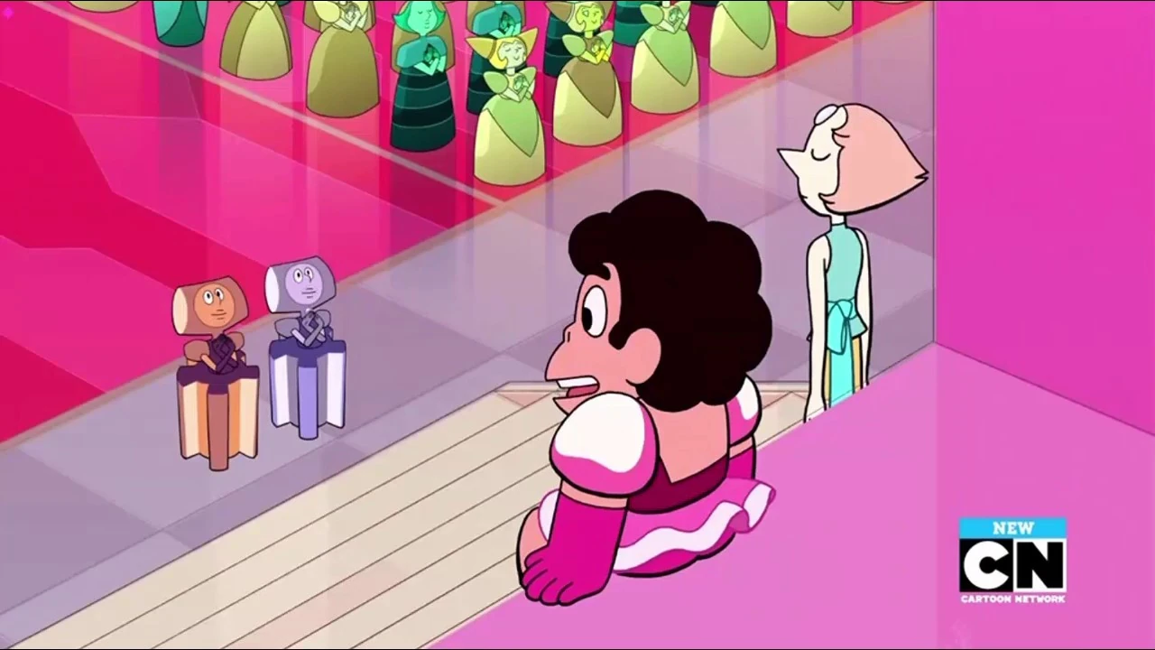 - Cuando las Diamantes entran en la baile (y mientras están fusionadas), se corrige la apariencia del Jade azul-verde y su piedra preciosa está en la ubicación correcta.