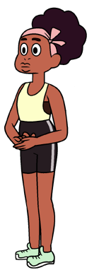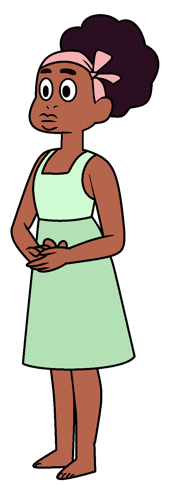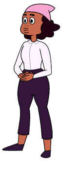 Lleva un vestido de playa celeste y un listón rosa en la cabeza. | "La Fiesta en la Playa" "Steven y los Stevens" "Fricción Histórica" "Papá Pierde el Ritmo" |