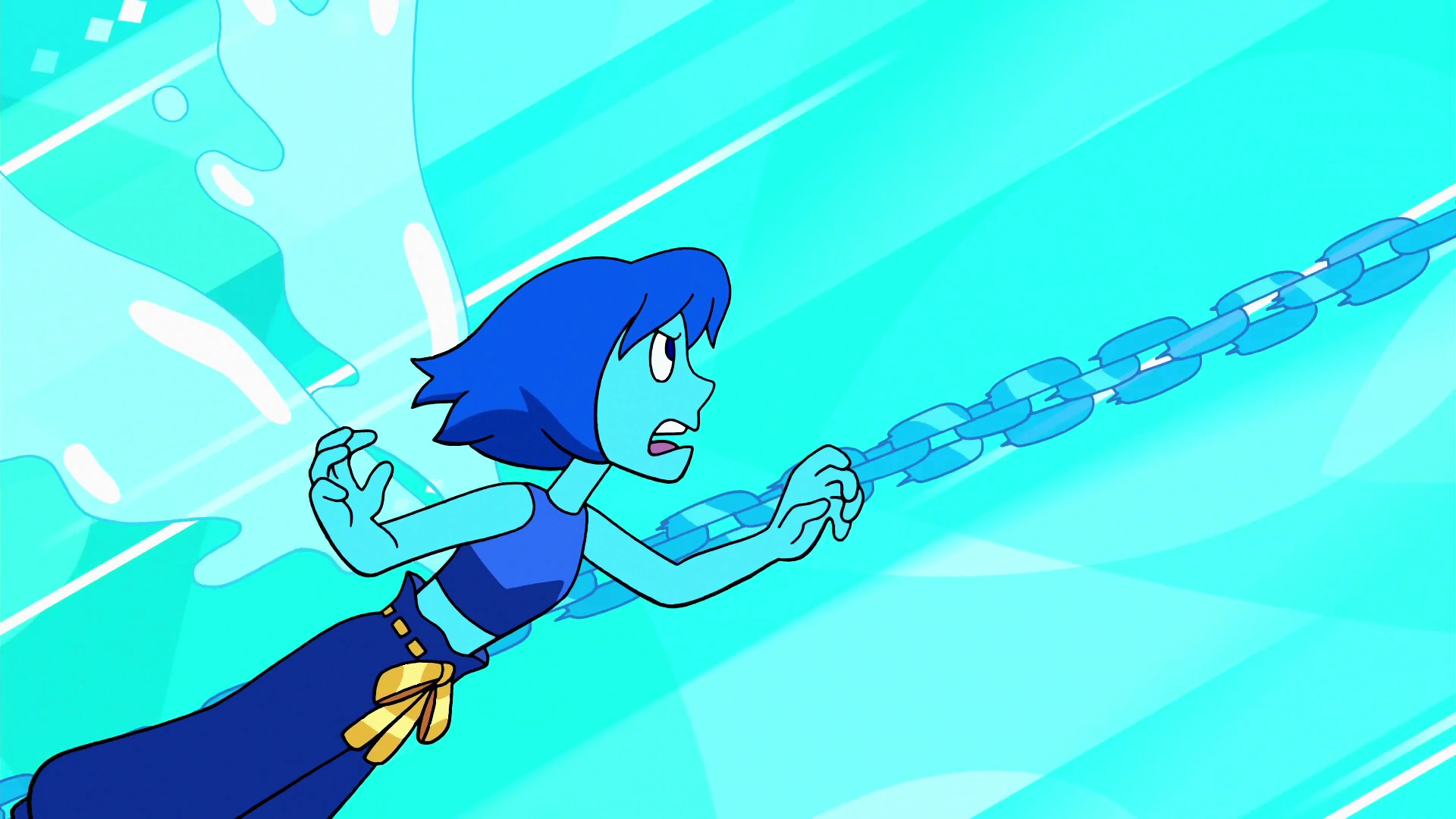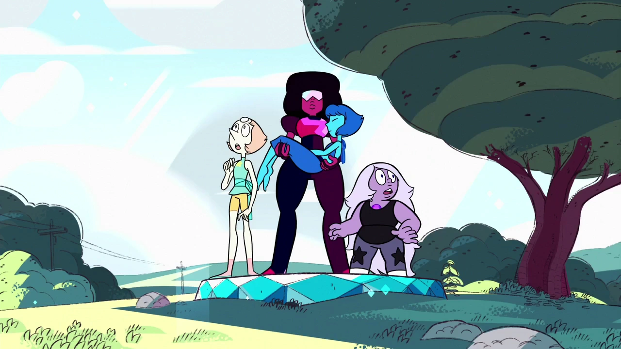 luchando contra la nave de Diamante Blanco en el Planeta Madre. Juntas, logran conectar las naves de Amarillo y Azul a las naves de Blanco y Rosa. Luego todos se ponen en los brazos para intentar hablar con Diamante Blanco, pero fallan, por lo que tienen que huir, Lapis llevando a Bismuto con sus alas. Sería salvada por Sunstone e intenta luchar en la batalla contra Diamante Blanco, pero se quedaría fuera intentando llegar a la cabeza de su nave. Más tarde, cuando Steven ya había hablado con Blanco, logra entrar junto a Peridot y Bismuto, y se reencuentran con las demás. Vuelven a la Tierra, descorrompen a las gemas corruptas y, junto a todos, se queda disfrutando una bella noche. Dos años después, en "Steven Universe: La Película", se muestra que se ha mudado al Pequeño Planeta Madre donde ayuda con la última fase de construcción. Luego, por el ataque de Espinela a las Gemas de Cristal, ella junto a Peridot y Bismuto, es la única que puede ayudar a Steven, y le da ánimos cantando "Con Nuestro Honor", para luego ir a revisar el Inyector de Espinela, pero aunque usa su hidroquinesis, no funciona, ya que hace que el interior del inyector fluya más rápido. Ya cuando Espinela desactiva y reactiva el inyector más rápido, ella ayuda a varios ciudadanos de Ciudad Playa a llegar sanos y salvos al Pequeño Planeta Madre.