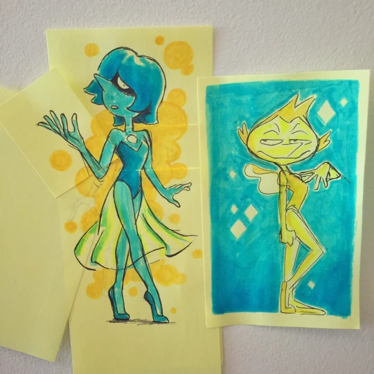 - Ella y Perla Amarilla son las únicas Perlas de las Diamantes que comparten el mismo diseño de atuendo con la diferencia de las paletas de colores.