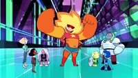 - Es La tercera fusión de tres gemas en ser vista en la serie (Steven Rubi y Zafiro). La primera fue Sugalite y la segunda Sardonyx