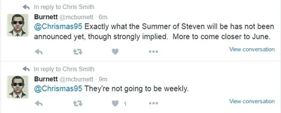<div class="quote"><i>Edward Zachary Sunrose wrote: IT RETURNS IN JUNE FOR WEEKLY EPISODES THROUGH AUGUST (BYE, BOMBS!).</i></div>
