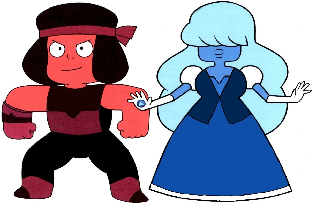 <p>Since we all got trolled in Snow Day cuz we didn't see Sapphire and Ruby's new forms, I wanted to show you my take on them : (sorry for the lousy coloring, digital art is new for me)