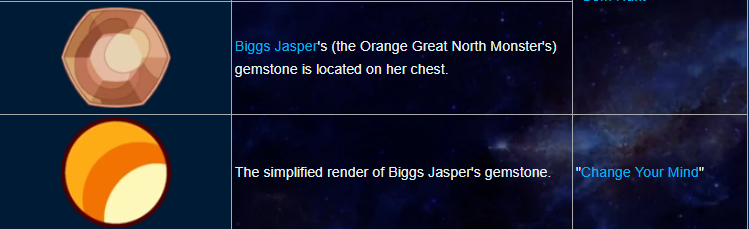 <p>For anyone who doesn't understand, I kinda think that we should add the other version of someone's gemstone next or below their main render on the Gemstones page. For example, we could add Peridot's smooth gemstone below her faceted one just to show both versions of the gemstone, same goes for Biggs Jasper and possibly even Bismuth's full gemstone. I'm kinda split on this since I don't know if it's necessary or not.