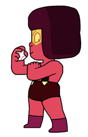I cannot draw so I used Gacha life. She is a human/gem hybrid who has a ruby on her shoulder. Her name is Sam and her gem weapon is nunchucks. Also I have a theory that Steven’s pink state was his gem half taking over so she can do something similar to it. Her mom was never a crystal gem, but did survive the corruption blast when she got stuck in a cave.