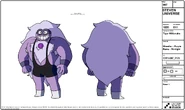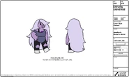 Améthyste a la peau violette, les yeux bleus foncés et les cheveux gris clair. Elle est ronde et est assez petite. Sa gemme se trouve au niveau de sa poitrine.