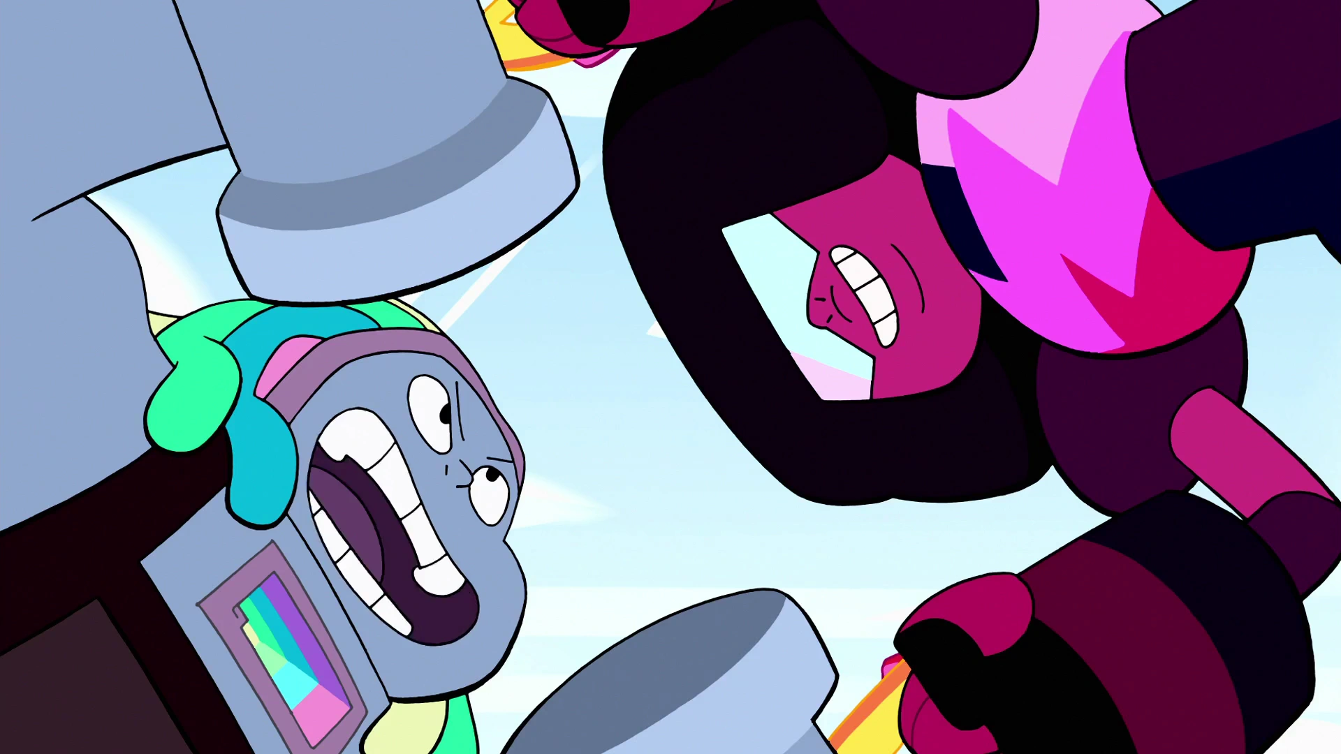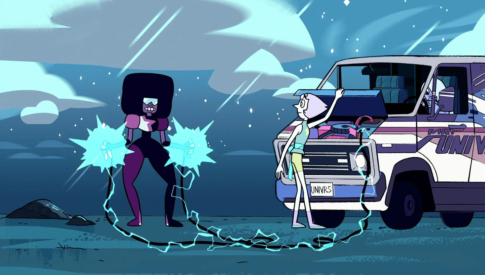 Jasper giudica Garnet in malo modo per essere una fusione, cosa che per lei è solo una tattica sciocca usata per far diventare forti le Gemme deboli. Garnet, tuttavia, non da audienza alla provocazione e procede a lottare contro di lei in un uno contro due.