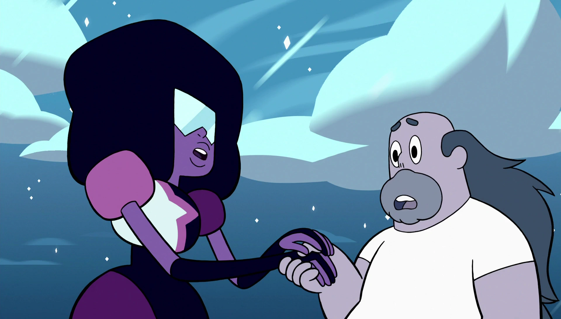 Nell'episodio "Il sogno di Steven", dopo la cattura di Greg da parte di Diamante Blu, Garnet dice a Steven: "Andremo nello spazio e giuro che lo riporteremo a casa" ciò suggerisce che ci tenga a lui.