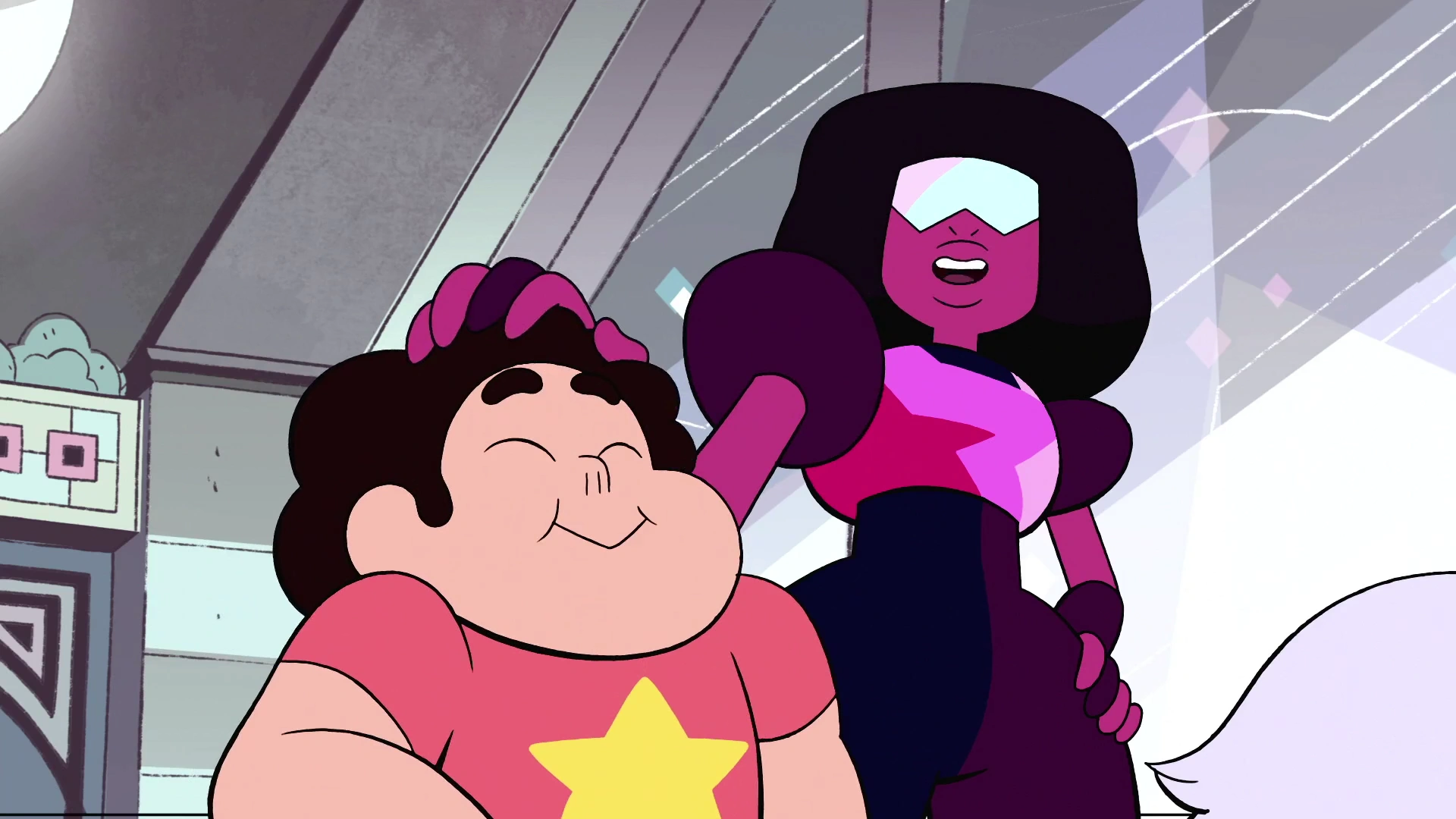 Garnet accarezza Steven sulla testa.
