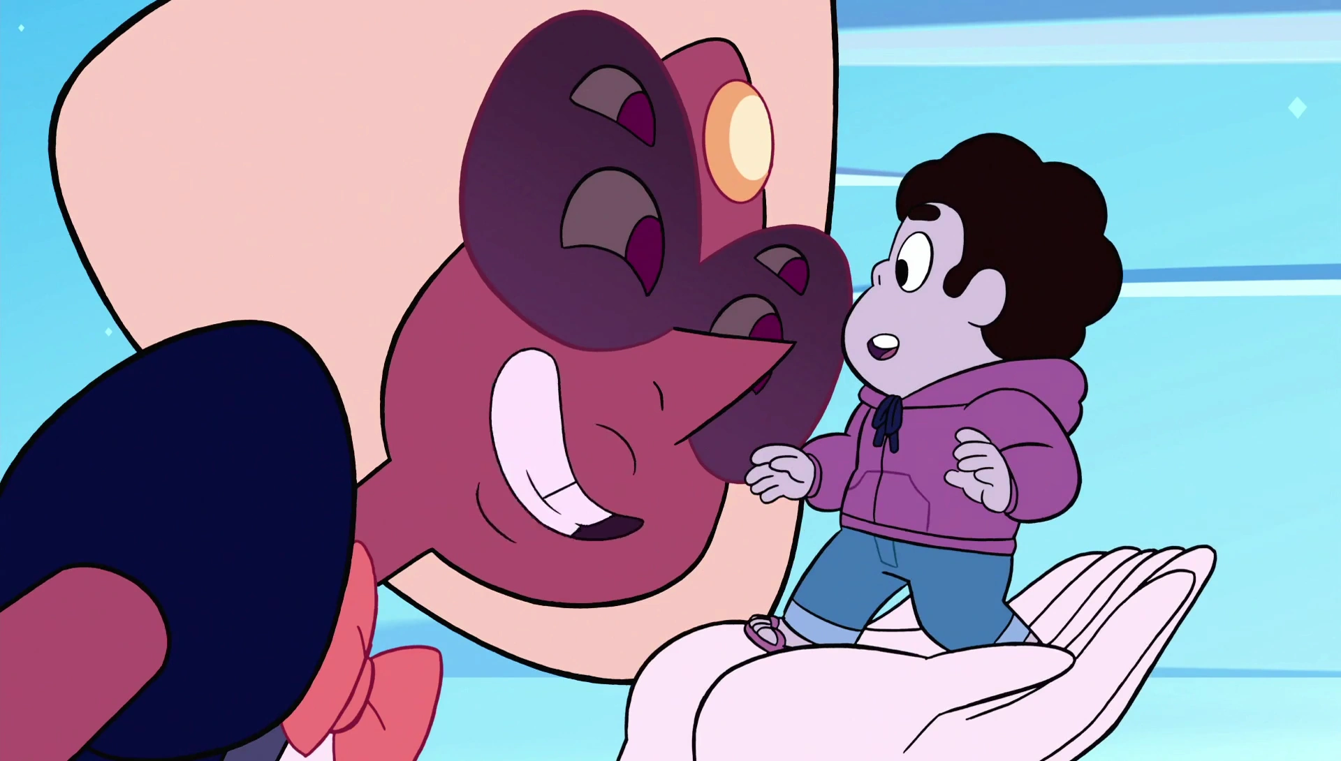 Oh, per tutte le stelle! Tu sei Steven Universe, finalmente c'incontriamo! Allora, cosa te ne pare? Valeva la pena aspettare? |