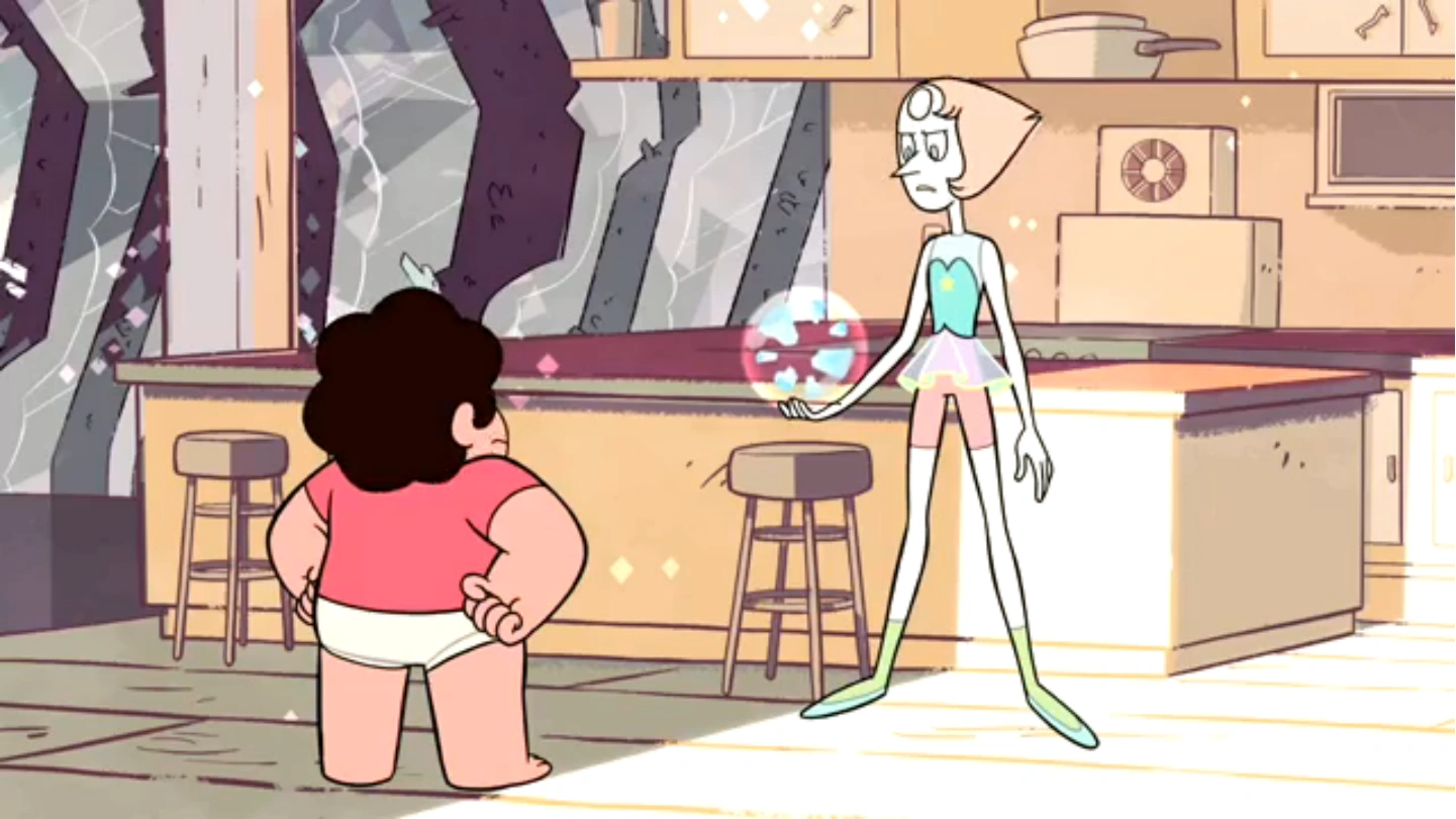Dopo che Perla se n'è andata, Steven trova i suoi pantaloni a camminare da soli, esclamando "Ma che cosa succede?" ed insegue i suoi pantaloni per tutta la casa. Alla fine, Steven riesce a catturarli dopo averli placcati, li indossa, e trova uno dei frammenti di gemma che Perla stava cercando dentro ad una tasca. Steven lascia poi il tempio in cerca di Perla per darle il frammento di gemma.