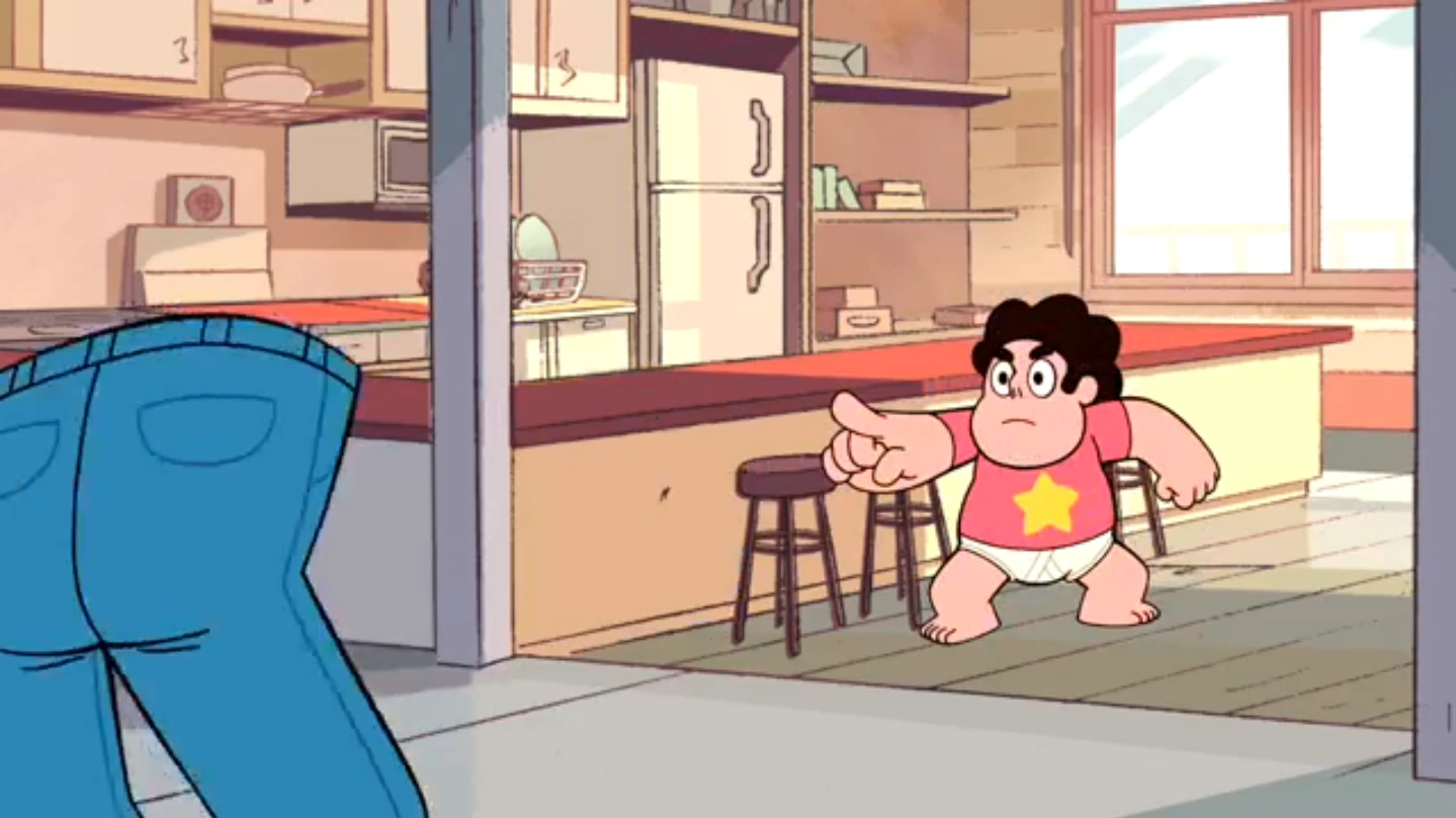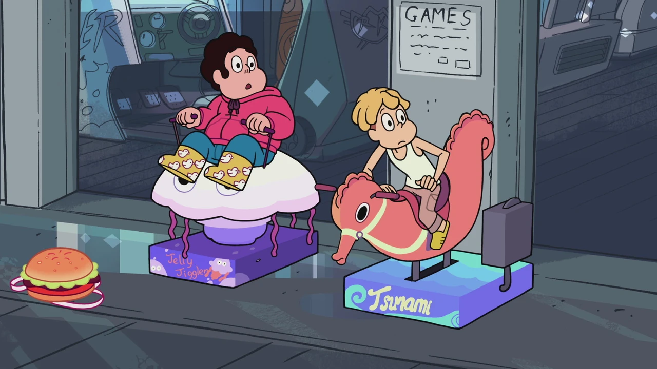 - [05:35] La parte finale di una delle maniglie del Jelly Jiggler alla Sala Giochi è colorata dello stesso colore della pelle di Steven, facendo sembrare che abbia sei dita.