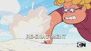 Kamera pokazuje wnętrze smażalni frytek, Peedee'go oraz Ronaldo, który siedzi na krześle w kapeluszu i mówi, że Klejnoty opuściły Beach City. Jego brat odpowiada mu, że skoro zniknęły, to razem z nimi wszelkie dziwactwa, jakie były w mieście. Znów pokazana jest plaża przy Świątyni, do której biegnie Ronaldo. Gdy stoi przy drzwiach, uderza w nie prosząc, by Klejnoty zostały. Po chwili u progu staje Granat, która po wysłuchaniu błagań nastolatka o zostanie, zgadza się i przez zamknięte drzwi ogląda jak blogger płacze.