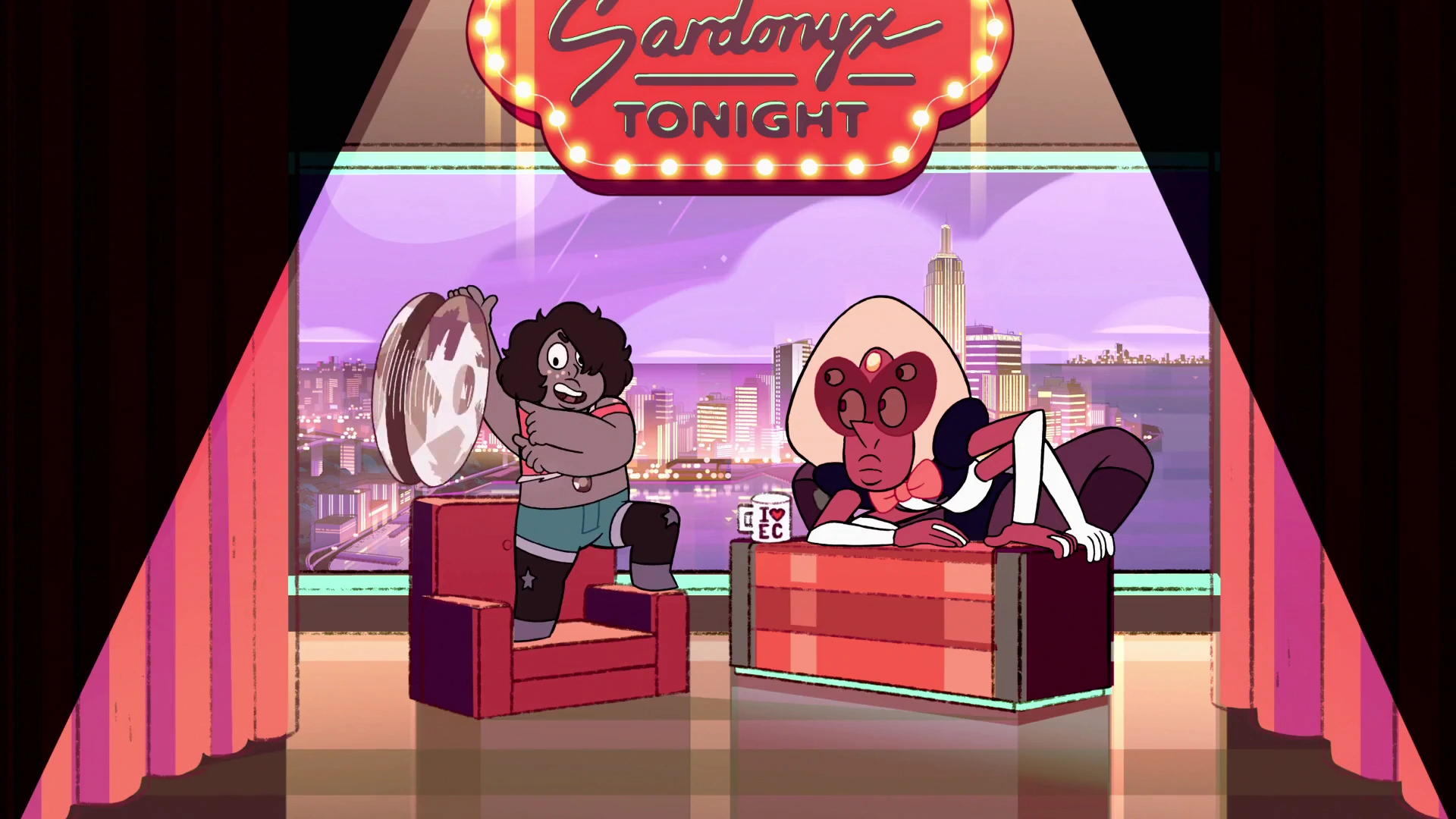 Kwarc Dymny jest zaskoczony, że istnieje pokój dla Sardonyks, która wyjaśnia, że pokój istnieje tylko tak długo, jak ona. Oboje wchodzą do pokoju, który jest całkowicie czarny, ponieważ, jak mówi Sardonyks, przedstawienie jeszcze się nie rozpoczęło. W tym momencie zaczyna się Sardonyks Tonight, talk show prowadzony przez samą Sardonyks. Sardonyks jest podekscytowana powitaniem gościnnej gwiazdy serialu, na tyle, że w jej słowach „zdruzgotała”. Z zadowoleniem przyjmuje Kwarc Dymny i prosi publiczność o oklaski. Sardonyks rozpoczyna talk show, prosząc Kwarc Dymny, aby opowiedział wszystko, co można o nich wiedzieć. Kwarc dymny zaczyna od stwierdzenia, że lubią długie spacery po przedszkolu. Jest to również miejsce, w którym pojawił się Kwarc Dymny i gdzie pokonali Jaspis w pojedynku. Sardonyks robi dowcipne uwagi dotyczące śmierci Jaspis. Kwarc dymny również to robi, twierdząc, że szaleństwo Jaspis, chociaż zepsuta fuzja jest przyczyną „krótkiego lontu” Jaspis. Kwarc Dymny zauważa niefrasobliwy tłum i pyta, skąd ich wzięła Sardonyks; odpowiada, że zrobiła je sama (ku łagodnemu dyskomfortowi Dymnego).