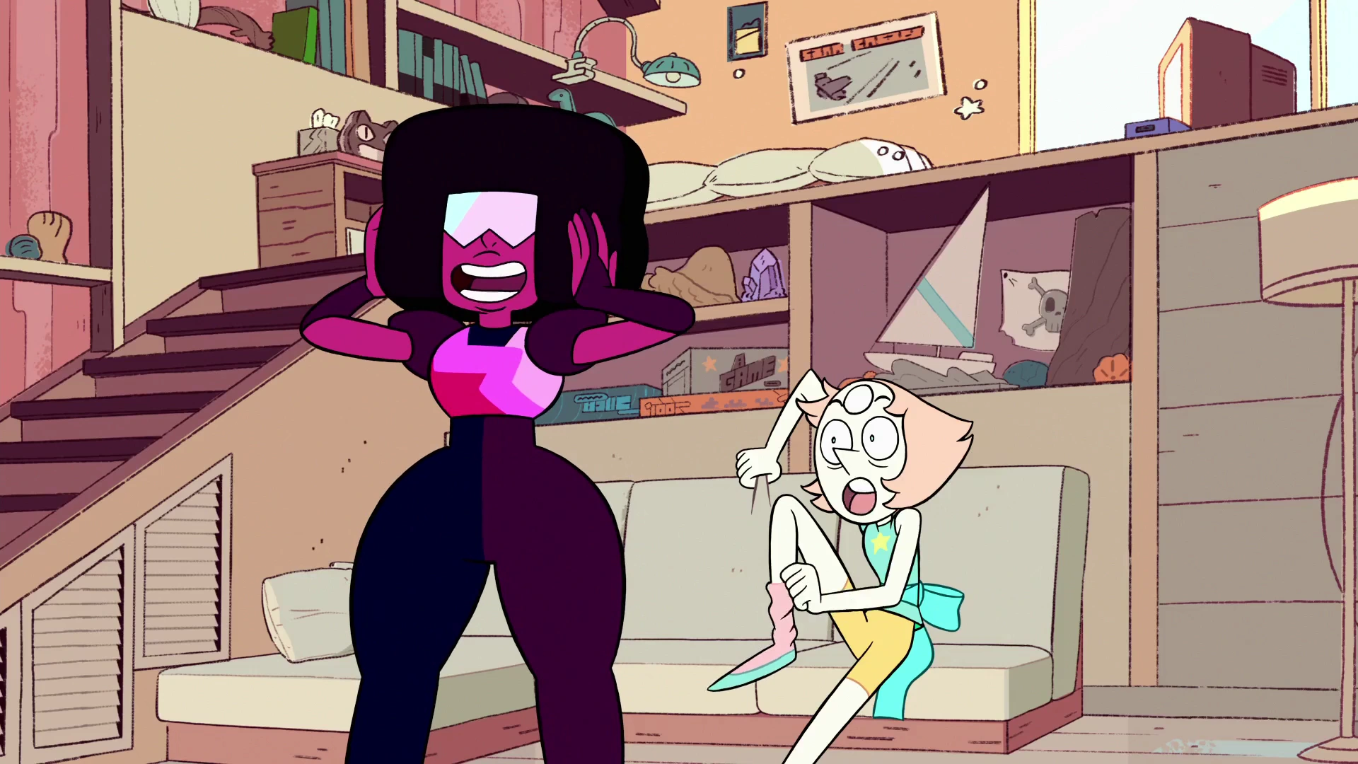 W Beach House Steven i Ametyst planują wykonać kilka sztuczek. Ametyst sugeruje wykonanie „psiego spacerowicza” następnym razem, ale Steven zachęca do tego, by wystąpił inaczej i wystąpił, zanim Perła i Granat nabiorą podejrzeń, co, jak można się było spodziewać, już mają. Perła pyta Granat, czy powinni ich zapytać, co się dzieje, ale Granat odpowiada, że nie może. Perła pyta Stevena i Ametyst, czy ci dwaj mają coś do powiedzenia. Steven i Ametyst