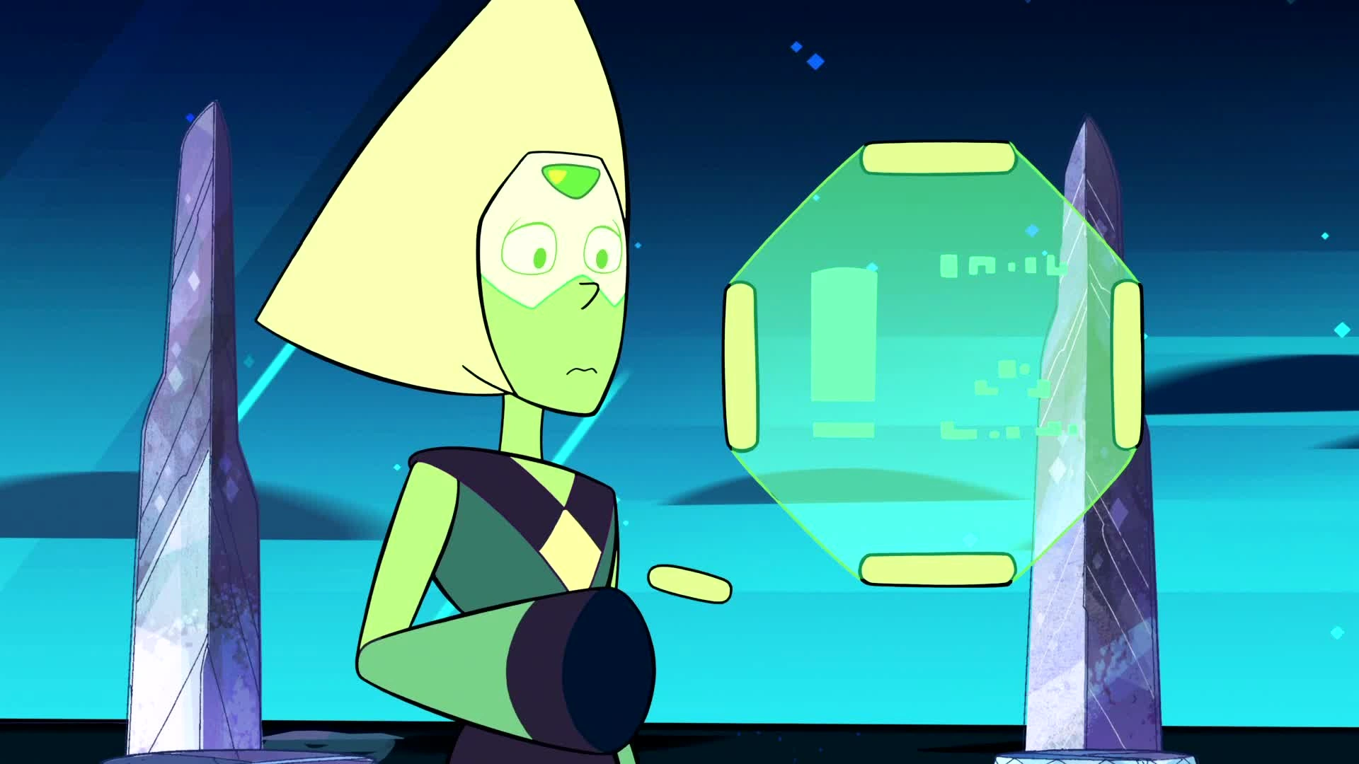 Perydot w odcinku "Wiadomość Odebrano" została mianowana na członka Kryształowych Klejnotów pomimo wyraźnej niechęci.