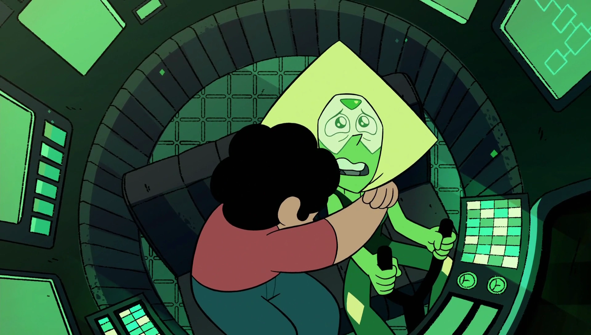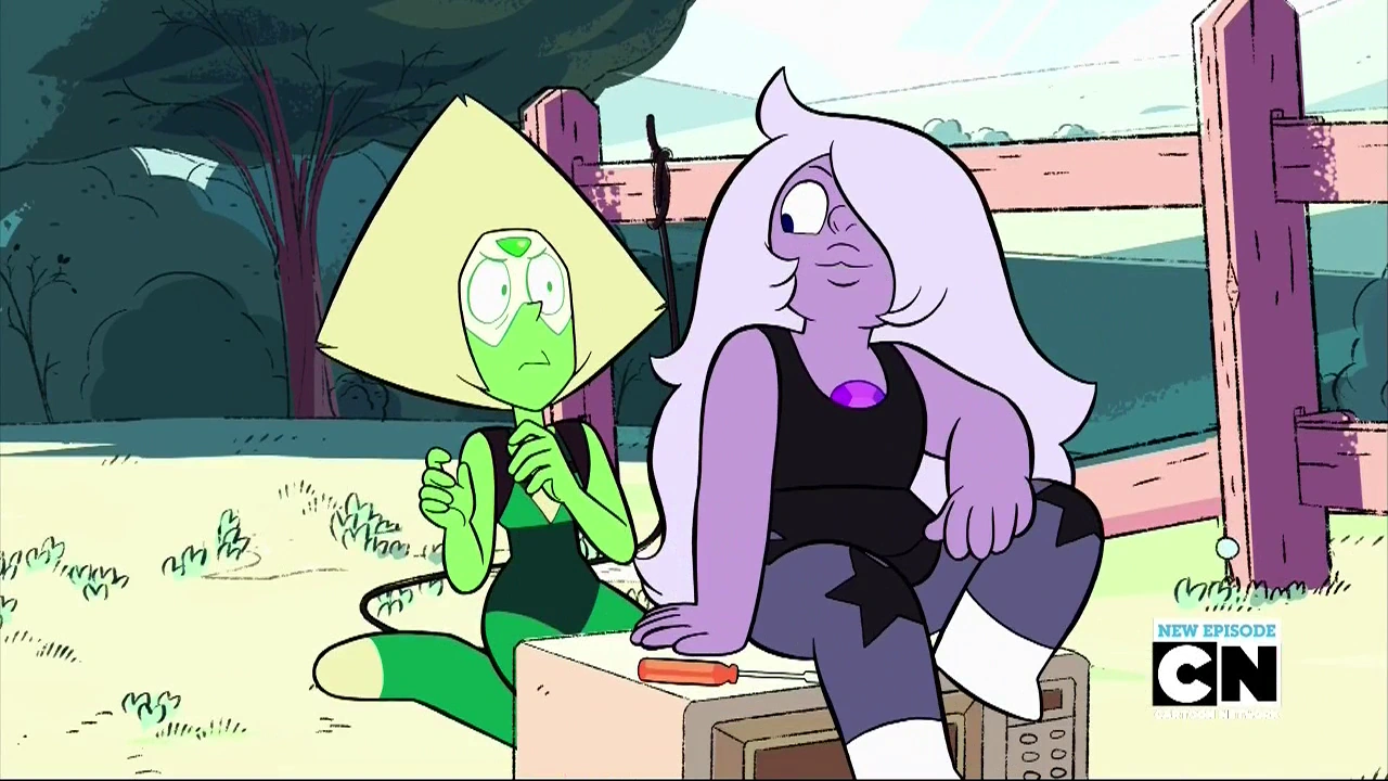 W "A Mogło Być Tak Pięknie" Steven tłumaczy Perydot co to jest muzyka i mówi jej, żeby napisała własną piosenkę. Przy zapalonym ognisku, Klejnot zaczyna śpiewać piosenkę, która została dokończona przez Stevena i resztę. Po ukończonej pracy nad wiertłem, Klejnoty postanawiają polecieć do Księżycowej Bazy w celu uzyskania informacji na temat położenia Zlepka. Lew Stevena pomaga im w przetransportowaniu się do tego miejsca. Kiedy już byli w głównym pokoju na bazie, Perydot zaczęła tłumaczyć chłopcu, na czym polegał plan skolonizowania Ziemi przez Klejnoty z Homeworld. Stwierdziła, że rebelianci tak naprawdę nie uratowali Ziemi i byłoby świetnie gdyby plan się powiódł. Granat, Perła i Ametyst nie popierały jej zdania. Kiedy zamierzali już wychodzić, zielony Klejnot zabrał dziwną rzecz, która była przy konsoli.