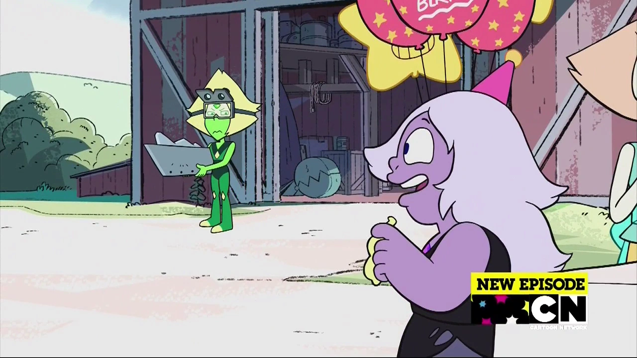 Po raz kolejny pojawia się w Gem Harvest, gdzie razem z Lapis zaczyna hodować warzywa, mając nadzieję, że będą jak Klejnoty, którymi zajmowała się w przedszkolach. Kiedy okazuje się inaczej, jest tym zawiedziona. Jednak następnego dnia cieszy się, że Stevenowi udało się wyhodować Dyniowego Psa, który choć z początku nie reagował na Perydot i Lapis, jednak się do nich przekonał. Gdy nad trójką przelatuje samolot, wszyscy idą zobaczyć o co chodzi i są zaskoczeni widząc mężczyznę, który chce "swojej stodoły". Steven kontaktuje się z ojcem, który rozpoznaje gościa - jest to jego kuzyn, Andy DeMayo, który chce wygonić Perydot i Lapis ze stodoły. Jednak żadna z nich nie wyraża na to zgody. Andy chce jednak trzymać się tradycji. To prowadzi do wielu dziwacznych sytuacji gdzie Klejnoty chcą urządzić mu kilka imprez na raz. Koniec końców Andy dochodzi z Klejnotami do porozumienia i pozwala im zostać w stodole, którą teraz zamieszkuje także Dyniowy Pies.