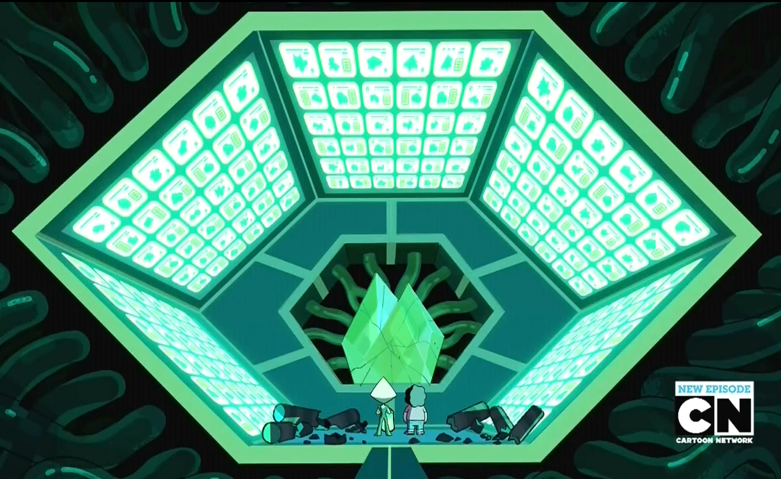 Tego samego dnia, w odcinku "Wiadomość Odebrano", czternastolatek postanawia porozmawiać z Perydot na temat Diamentów. Mówi mu, że są to istoty lepsze i doskonalsze niż zwykłe Klejnoty. Steven wykorzystuje chwilę jej nie uwagi i zabiera obiekt, który zabrała. Zamyka ją w samochodzie i biegnie do reszty klejnotów, aby pokazać im tajemniczy przedmiot. Jest mu smutno, iż Perydot nie nauczyła się niczego o Ziemi. Perła jest w szoku, że zabrała Diamentowy Komunikator z Bazy Księżycowej. Ametyst rozczarowana traci do niej zaufanie, zaś Granat chwali chłopca za chęć zmiany zachowania zielonego klejnotu. Z Szopy Grega wyłania się nagle Perydot ze swoim robotem. Kradnie komunikator i ucieka. Klejnoty starają się ją złapać, ale udaje się jej aktywować obiekt. Na komunikatorze ukazuje się Perła Żółtego Diamentu. Stara się ona dowiedzieć, dlaczego używają bezpośredniej linii z Żółtym Diamentem, który po chwili odpowiada na połączenie. Perydot wyjaśnia, że misja się nie powiodła, a jej statek został zniszczony w wyniku "wypadku". Żółty Diament cieszy się, że już niedługo Zlepek wyłoni się. Informuje klejnot, że wyśle statek, który zabierze ją z Ziemi. Perydot stwierdza, że powinni zniszczyć Zlepka i nie pozwolić, aby planeta została zniszczona. Kiedy Diament pyta ją co wie o Ziemi, ona denerwuje się i obraża ją prosto w twarz, po czym rozłącza się. Wreszcie zrozumiała przynajmniej niektóre wartości przedstawione przez Stevena, który na końcu nazwał ją "Kryształowym Klejnotem".