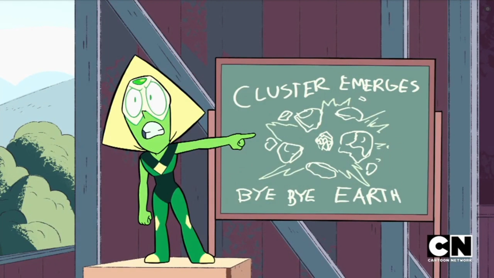 Od tego czasu na Ziemię zaczęły spadać wysyłane przez nią robonoidy. Jeden z nich zdołał dotrzeć do Przedszkola i utworzyć połączenie. Perydot miała zamiar wykorzystać obecną tam "przestarzałą" technologię do sprawdzenia eksperymentu, jednak przeszkodziło jej w tym pojawienie się Stevena. Widząc, że nie stanowi on żadnego zagrożenia, próbowała go zgnieść, do czego nie dopuściła Granat. Odkrycie, że na Ziemi stacjonują Klejnoty wyprowadziło ją z równowagi. Domyśliła się, że to one niszczą jej maszyny i uniemożliwiają jej przedostanie się na Ziemię poprzez teleporter.