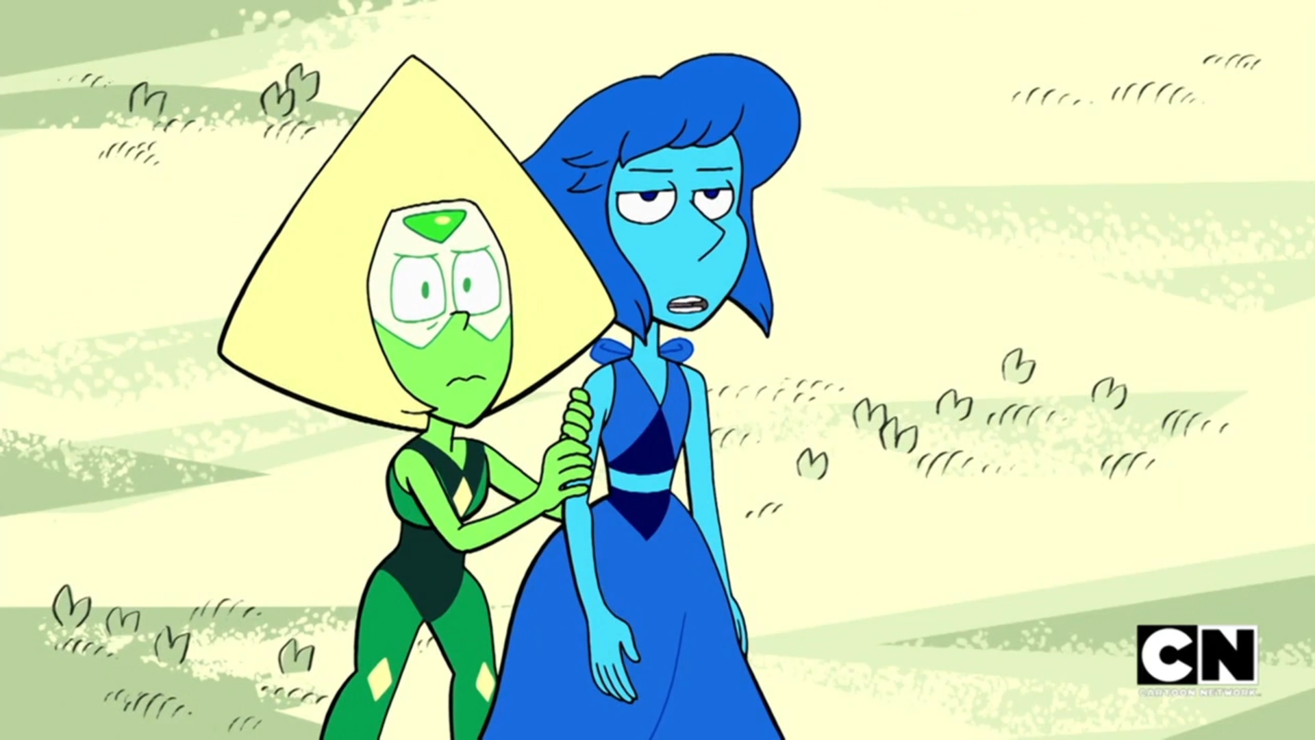 Na początku odcinka "Przyjaciółki ze Stodoły",Perydot mówi do dyktafonu o udanej rozmowie jej i Lapis, którą zaraz przeprowadzą. Dziwi się, że ta rozmowa jednak nie powiodła się. Lapis twierdzi, że nie chce ona z nią mieszkać. Steven postanawia pomóc Perydot w zaprzyjaźnieniu się. Chłopak proponuje zrobienie laurki dla Lazuli. On wykonuje rysunek, a ona piszę przeprosiny. Następnie, Perydot woła Lapis, która ją lekceważy. Zlatuje z silosu dopiero, kiedy woła ją Steven. Perydot czeka na reakcję Lapis, po przeczytaniu trochę zbyt szczerego tekstu. Plan się nie powiódł. Później, wiedząc że Lapis lubi wodę, robią dla niej sztuczne jezioro. Lazuli mówi jej, że spędziła w oceanie ostatnie kilka miesięcy, ale i tak dziękuje za jezioro. Perydot i Steven czują zakłopotanie. Ostatnim pomysłem zielonego Klejnotu jest wręczenie Lazuli swojego dyktafonu. Również ten prezent nie przypadł jej do gustu i nazywa go śmieciem, po czym go niszczy. przez co Perydot jest zła. Obie się kłócą. Lapis krzyczy na nią, że jedyną rzeczą, która ją ucieszy jest odejście Perydot. Tak też ona robi. Chwilę później, wraca do nich, ponieważ gonił ją wielki czerwony robot. Cała trójka schowała się do szopy. Maszyna znalazła tam ich, więc uciekają. Klejnot zostaje namierzony przez wrogi obiekt i chowa się za Stevenem, który mówi że ją ochroni. Lapis wychodzi na przód i formuje wodną rękę, która pokonuje robota. Na końcu, Lapis pyta się Perydot, czy się jej nic nie stało, a ona szeroko się uśmiecha.