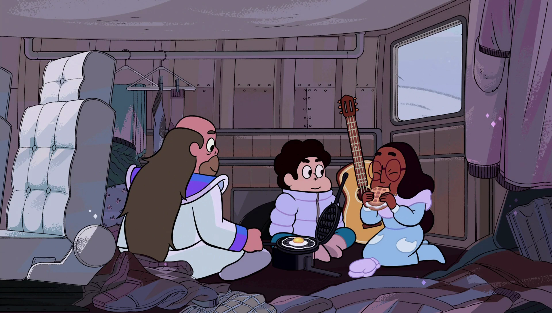 W nocy Steven i Greg śpią na kanapach. Chłopiec budzi się na chwilę i spostrzega Connie. Na widok tego, że nie śpi, uśmiecha się i podchodzi pod kanapę, po czym siada. Po chwili ona i Steven kierują wzrok w stronę okna, za którym pada śnieg.