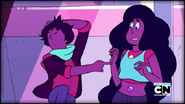 Później, na plaży, Steven zaczyna rozmawiać z Connie. Mówi jej, że fuzja jest trudna i wyraża swoje zniechęcenie z powodu swojej porażki. Mówi mu, że jest pod wrażeniem, że w ogóle potrafi tańczyć z Klejnotami, przyznając, że nie lubi tańczyć przed innymi ludźmi. To skłania go do poproszenia jej o taniec, stwierdzając, że to tylko ich dwoje. Zaczynają razem tańczyć, w końcu czując się ze sobą bardziej komfortowo. Steven nagle potyka się o Connie, a ona go łapie. Śmieją się i dotykają czoła, podczas gdy klejnot Stevena zaczyna świecić.
