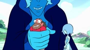 Mężczyzna podchodzi bliżej Niebieskiego Diamentu, a ona mówi, że Ziemia jest dziwną planetą, bo jest pod wrażeniem że ludzkość przetrwała w środowisku naturalnym. Wspomina potem, że ich aktualna lokalizacja jest miejscem, w którym Różowy Diament została skruszona. Greg pyta się, czy były ze sobą blisko i współczuje. Mówi, że wie, jak trudno jest po stracie kogoś ważnego, co powoduje u niej zdziwienie. Zaczyna on opowiadać, iż również stracił kogoś bliskiego i ważnego dla niego. Tęskni za nią i myśli o niej każdego dnia, lecz wie, że ona nigdy nie wróci, a jest to uczucie z którym trudno być w porządku. Niebieski Diament jest zaskoczona, że człowiek potrafi zrozumieć to, jak ona się czuje. Następnie informuje Grega, że niedługo będzie tu gotowa geo-broń, która zniszczy całą planetę, ale zdaje sobie sprawę z tego, że Greg na to nie zasługuje. Zadowolona mówi, że nie powinno jej tu być, ale cieszy się że przybyła ten ostatni raz, bo może uratować jeszcze kogoś. Szybko, jedną dłonią łapie Grega i przywołuje swój statek. Steven w szoku patrzy na całą scenę. Diament wsiada do swojego palankinu i leci w nim do pojazdu. Chłopiec krzyczy i skacze w jego stronę, jednak siła odrzutu go odpycha. Podczas gdy Steven spada, pojawia się Granat i szybko łapie go w powietrzu. Będąc na ziemi zaczyna go przepraszać i tłumaczyć, że dzięki wizji przyszłości widziała, jak Diament. Steven mówi, że zabrano jego ojca i powinien od początku się jej słuchać. Pyta się, co mają teraz zamiar zrobić, na co Granat odpowiada, że idą odzyskać Grega.