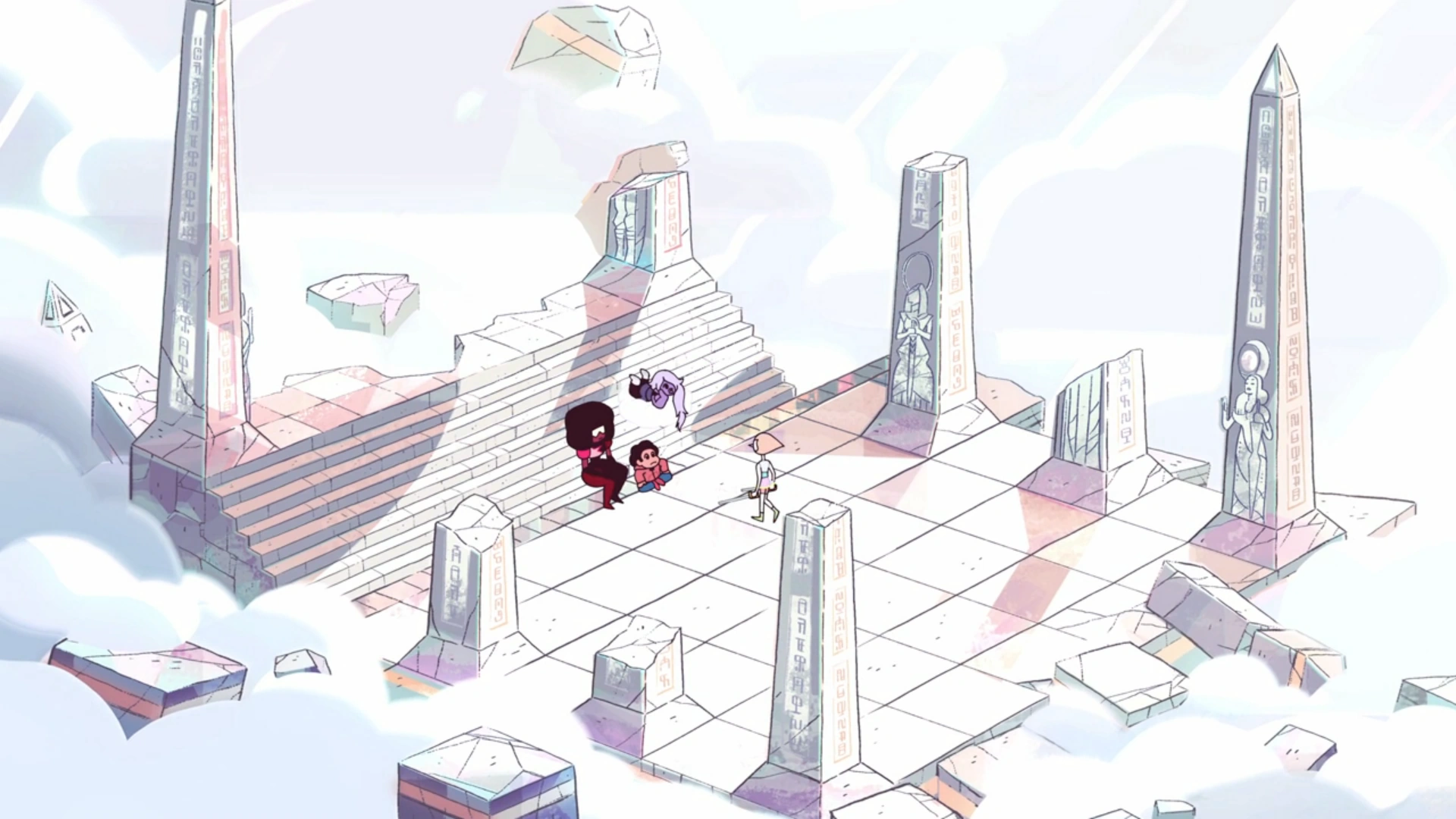 Akcja przeniosła się na plaże, gdzie Ametyst trzymając w lewej dłoni chmurę powiedziała do Granat "zaraz TO zrobię", na co Granat odparła "Nie krępuj się". Ametyst włożyła do ust chmurę i ją połknęła, po czym wzdęła się jak balon. Granat złapała przyjaciółkę za nogę, by ta nie odleciała. Kamera przeniosła się na stojących pod domem Stevena i dzierżącą w prawej dłoni parasolkę Holo-Perłę. Steven tłumaczył projekcji, że Perła często się gniewa na Ametyst, gdy ona tak się wygłupia, na co hologram powiedział "Tym razem nie będzie żadnych forów!". Stevenowi spodobał się zapał Holo-Perły. Oboje podeszli do klejnotów, do których Steven zwrócił się per "Łobuzy". Holo-Perła wycelowała parasolkę ku Ametyst, na co ona spytała się chłopca, "Czemu zadajesz się z tym czymś, to ohydne!", po czym beknęła, a z jej ust wyleciały kawałki chmur. Chłopiec tłumaczył swoje zachowanie tęsknotą za Perłą. Granat powiedziała mu, że Perła wróci w swoim czasie i zaleciła mu by ten był cierpliwy. Dodała jeszcze, by przestał się zadawać z Holo-Perłą, bo "to słabe". Mówiąc to niechcący puściła Ametyst, która uniosła się w powietrzu i odleciała. Granat z dosłownie założonymi rękoma zastanawiała się co zrobić.