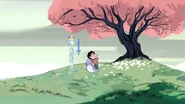 Po pewnym czasie Steven stał pod drzewem wiśni wraz z Holo-Perłą. Miała na głowie balonową koronę, zaś w lewej ręce trzymała balonowy miecz. Steven trzymając pluszowego morsa spytał się hologramu, czy podobało jej się na Jarmarku. Jedyne co powiedziała to "Parowanie". Steven prosił ją by przestała, po czym wyjaśnił, że drzewo pod którym stoją to ulubione drzewo Perły. Chłopiec spytał się Holo-Perły, czy ono cokolwiek jej przypomina, po czym palnął "O czym myślisz? No już, wal śmiało". Ostatnie słowo hologram zinterpretował jako komendę do walki. Wtedy hologram powiedział "Wyzwanie przyjęte" i uszykował się do ataku. Steven zrobił unik, zaś balonowy miecz z łatwością przeciął drzewo Perły. Przerażony Steven krzyczał, że prawdziwa Perła by tego nie zrobiła. Kazał hologramowi dać mu spokój, po czym pobiegł do domu.