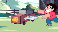 Następnego dnia Steven i Greg oglądali kreskówkę. Chłopak rozmawiał z nim o podróżach kosmicznych oraz o tym, że Perła za nimi tęskni. Zaproponował ojcu zbudowanie rakiety. Greg po przemyśleniu, zgodził się. Zaprowadził syna do szopy, w której jego ciotka i wujek kochający lotnictwo, zbierali różne rzeczy związane z nim. Chłopak nazwał ją "Universe & Universe Uniwersalna Podróż Kosmiczna Kwatera Główna". Zaczęli tworzyć coś na kształt rakiety, co bardziej przypominało mały samochodzik.