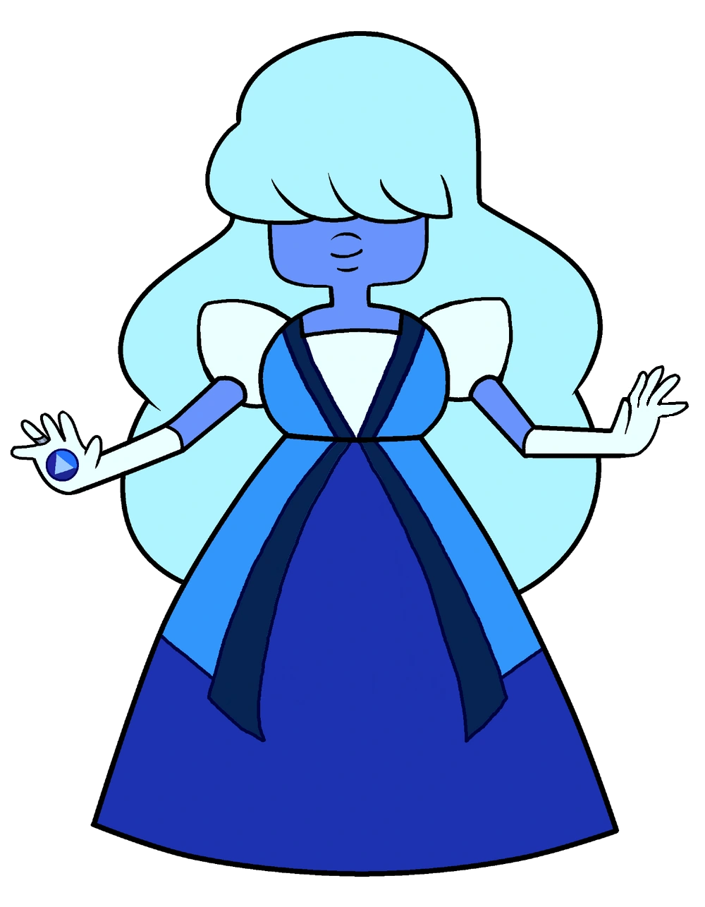 Ea poartă o rochie albastră, cu dantelă albă înăuntru care îi acoperă picioarele. Ea (rochia) este făcută așa ca să semene cu o geodă. Ea poartă mănuși albe, care pot să fie găsite și la Sardonix.