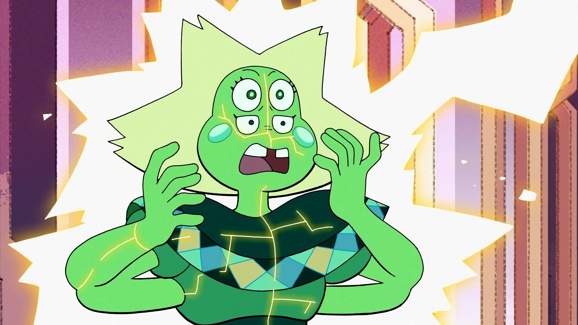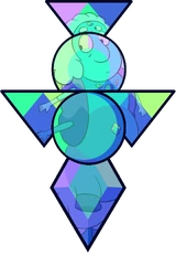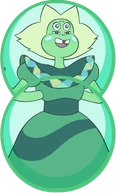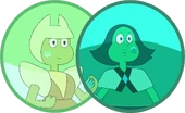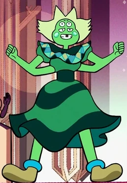 Это сравнительно небольшое слияние (чуть выше Гранат). Цвет кожи зелёного цвета, у неё четыре глаза, у верхних есть реснички. Самоцветы мятного цвета находятся, у неё на щеках. Волосы немного растрепаны, на макушке есть что-то, на подобие кошачьих ушек. Волосы такого же цвета что и у Перидот. Руки в основании локтей объединяются. На руках по шесть пальцев.