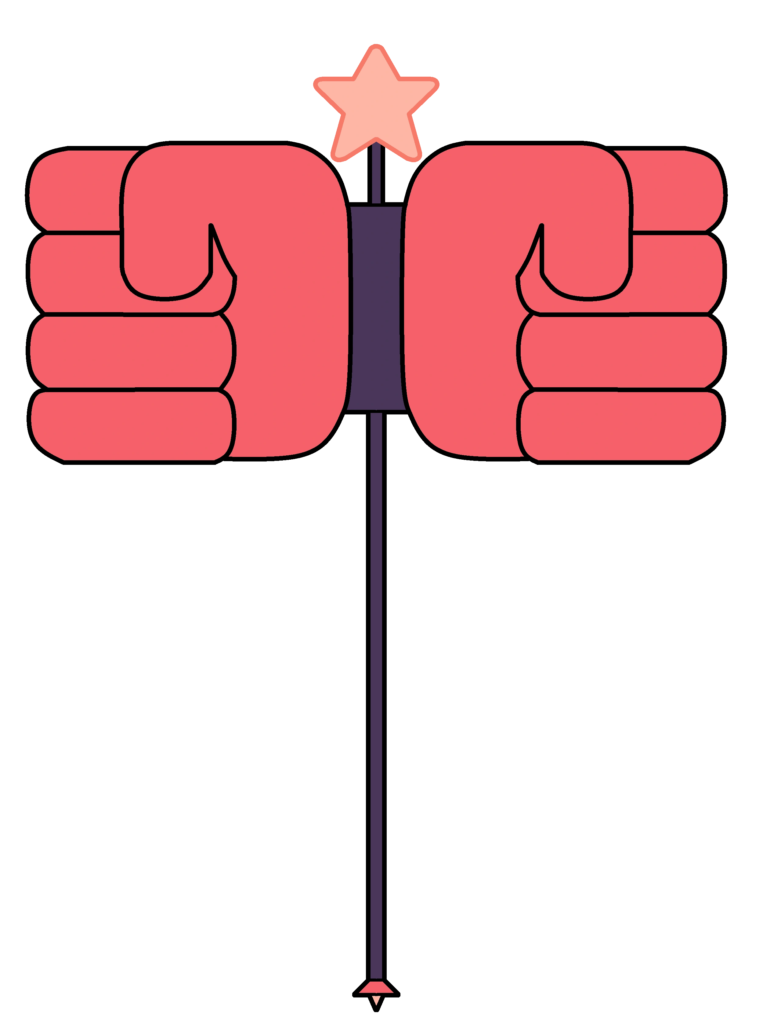 Верхушка молота красно-оранжевая, обе стороны которого выполнены из перчаток Гранат, в виде кулаков. Они соединяются тёмно-фиолетовой цилиндрической деталью, через которую проходит рукоять. На конце рукояти расположено навершие конической формы с шипом посередине, точно такой же формы что и у копья Жемчуг. На верхушке молота расположена жёлтая пятиконечная звезда, соединяющаяся с молотом через противоположный конец рукояти. Молот довольно огромен: его верхушка больше самой Сардоникс.