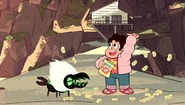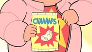 Стивен использовал эти чипсы чтобы успокоить Мать стоножек и расположить её к себе. После того, как она спасла Стивена от падающего сталактита и приняла удар на себя, в следствии чего она вернулась регенерировать в свой самоцвет, Стивен запузырил её камень и пачку чипсов, и вернул её вместе с чипсами в Горящую комнату.