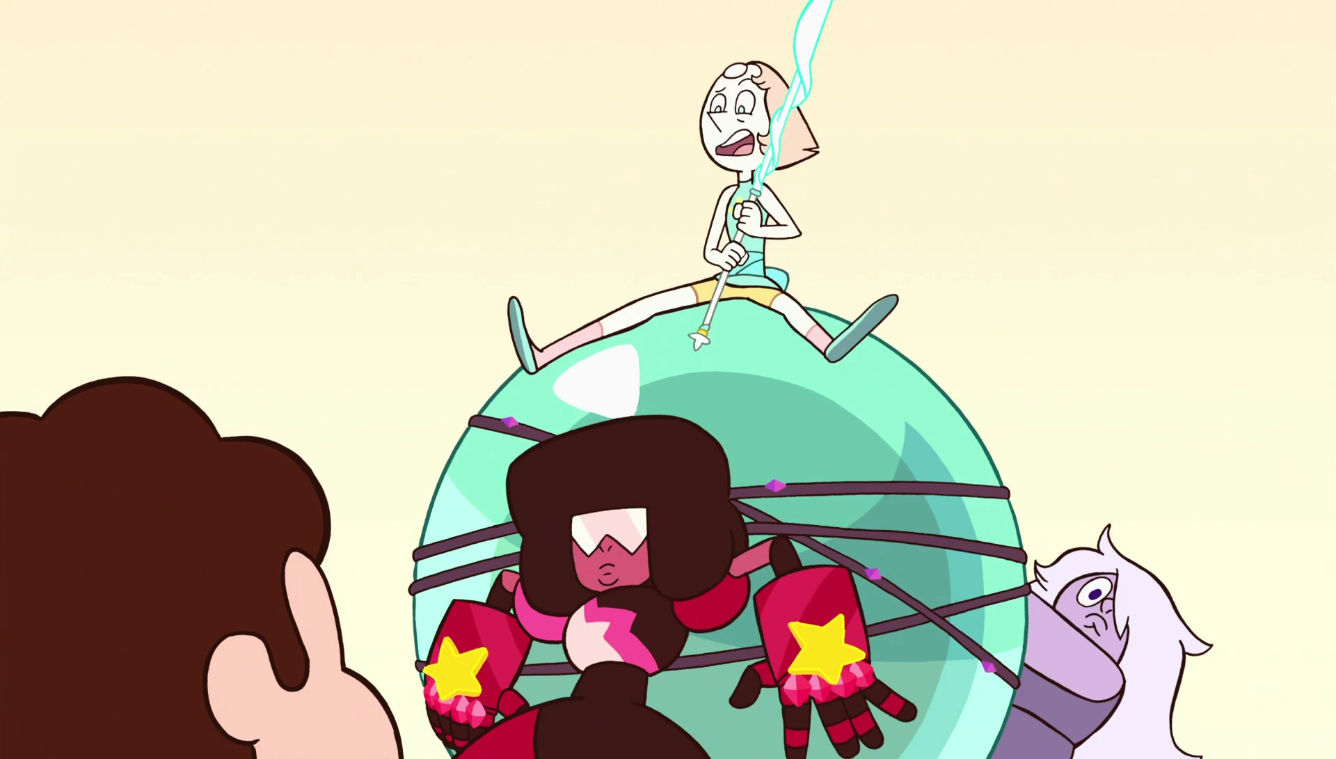 Перидот удивлена присутствием самоцветов на Земле, ведь Красное Око, которое было уничтожено, не зафиксировало их на Земле, и прошлые записи говорят о том, что самоцветы были уничтожены на этой планете. В этот же момент Перидот понимает, кто был ответственен за уничтожение роботов, которых она посылала. Жемчуг заявляет, что кристальные самоцветы всё ещё существуют и будут защищать планету и всех её живых существ. Перидот озадачена, ведь она впервые слышит о существовании кристальных самоцветов. После этого они начинают сражаться с Перидот и пытаются уничтожить станцию. Перидот крайне недовольна этим и заявляет, что она выполнит свою миссию, несмотря на их вмешательство, только это будет труднее. В конце концов Аметист берёт роботизированную руку Перидот и ударяет ею по источнику питания. Перед отключением станции Перидот успевает сказать, что она сообщит обо всём, что тут произошло.