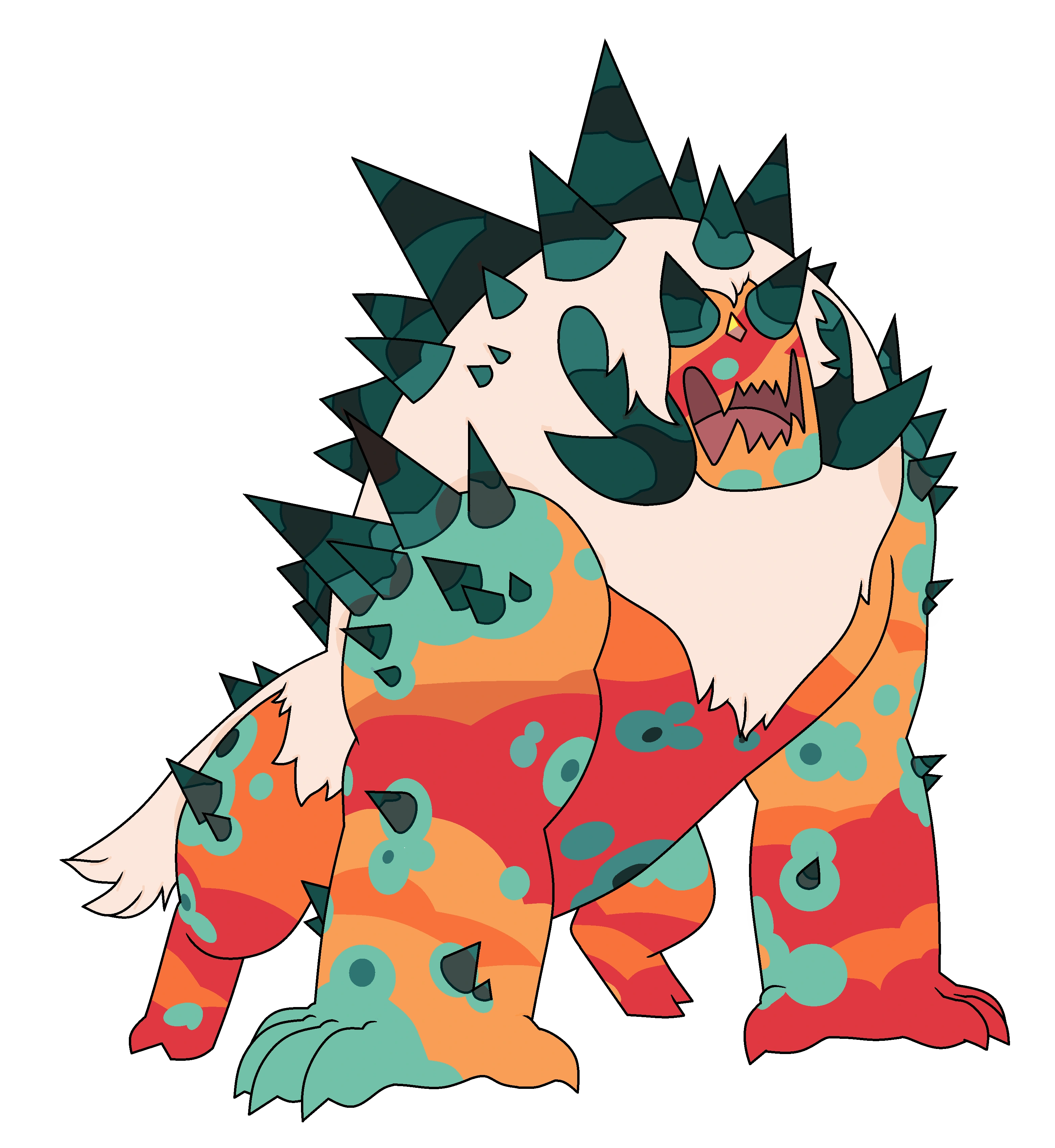 Bozulmasından sonra bedeni birleştiği kurtsal buz canavarına benzemiştir fakat bedeninin çeşitli yerlerinde mavi dikenler çıkmıştır, gözlerini kaybetmiştir ve kafasının iki tarafındada boynuzu çıkmıştır. Boynunda kirli beyaz bir yelesi çıkmış, teni turunculaşmış ve teni ile birlikte dişleride turunculaşıp keskinleşmiştir.