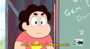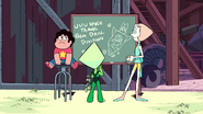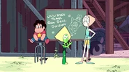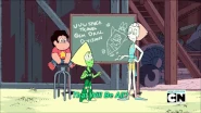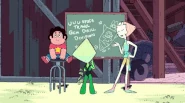 [PLOT] [05:14] When Steven is introducing the Robolympics, before the close up, the chalk board is blank. When Steven says "Let the games begin!", the chalk board says "Robolympics".