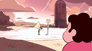 [PLOT] [01:50] In the first shot of the Barn, the tool box in front of the chalkboard is not visible. It appears in the following close-up shot of Pearl and Peridot talking and looking into the Barn. It disappears in the next scene.