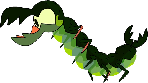 The Centipeetles are large, centipede-like entities that are produced by the corrupted Nephrite. They appear to be very similar to the corrupted Nephrite, sans the mane and crystal-like growth covering on each segment. The Centipeetles are smaller compared to the corrupted Nephrite, primarily composed of seven different segments. The upper portion of the Centipeetle is covered in a "chitinous", bumpy, dark green exoskeleton throughout its body, with a single pair of legs of the same color. The lower side of each segment is of a light green and slightly translucent with a yellow-green diamond shape in the middle of each of it. The head of the Centipeetle, unlike the corrupted Nephrite, has two colors, the upper portion, and upper mandible being dark green, and the lower portion and lower mandible a light green color. The Centipeetles have no gemstones of their own, and its eye is still located inside the base of the mandible. The last segment lacks a pair of legs but has a set of large, pincer-like cerci reminiscent of those belonging to earwigs.