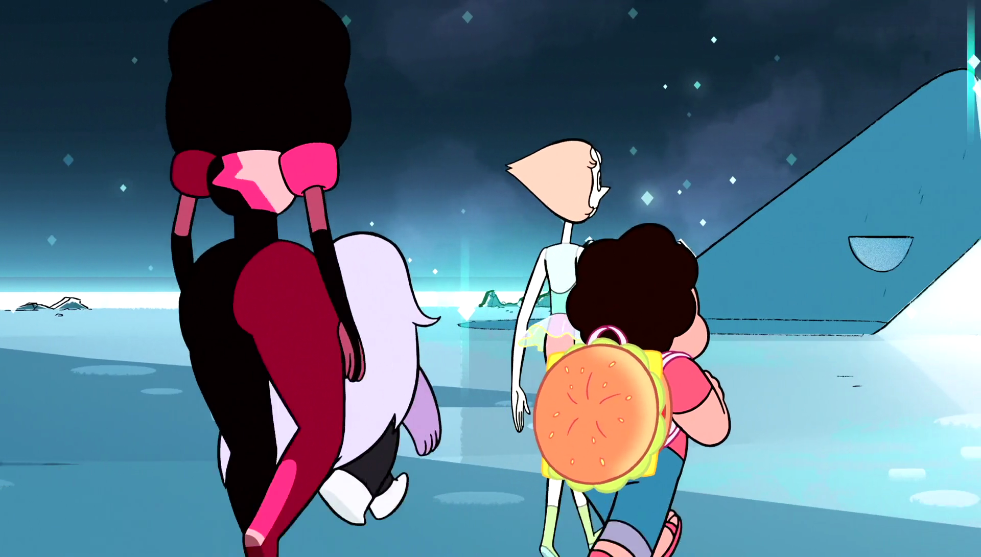 A mission to the Lunar Sea Spire takes a treacherous turn, but Steven has packed his totally amazing Cheeseburger Backpack with anything they could ever need![2]