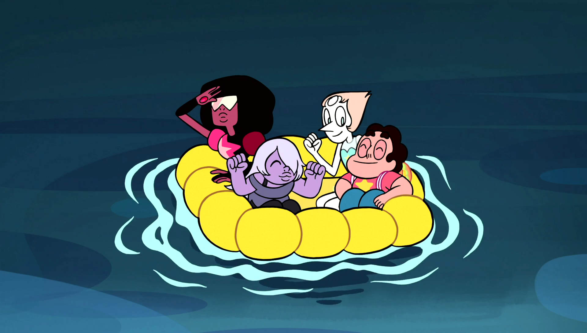 The Gems say it is worth a shot and Steven puts Mr. Queasy where the Moon Goddess Statue was supposed to go. A beam of light goes from Mr. Queasy directly to the moon. The doll begins to levitate for a moment, and it seems as if it is going to work, only for the doll to vibrate and then totally explode. With the substitute for the moon goddess statue a failure, the whirlpool collapses around the Lunar Sea Spire and it collapses, drowning the ocean piece by piece. Surviving the fall, the Gems one by one pop up from underwater.