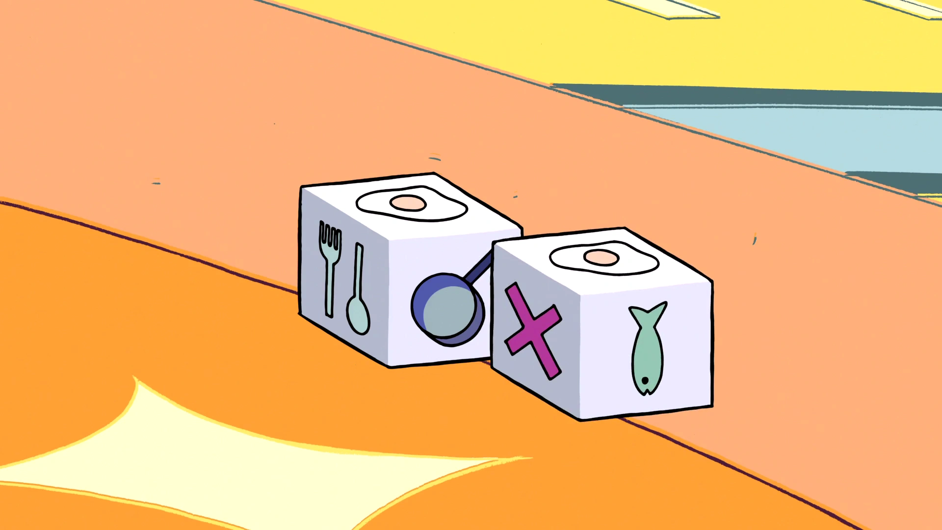 - These dice are not numbered, but have pictures of various kitchen items, with a sunny-side up egg implied to be of the highest value.